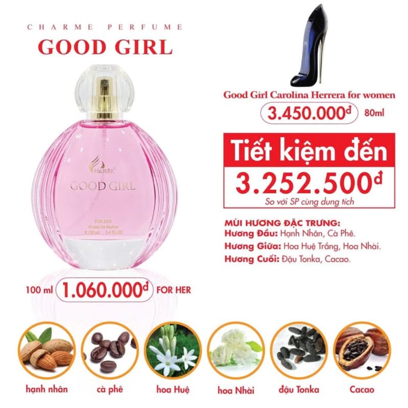 ✅ Mùi hương tương tự Good Girl Carolina Herrera – phiên bản tiết kiệm hơn nhưng chất lượng không kém.
