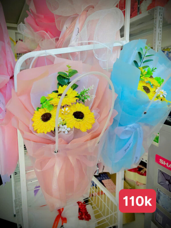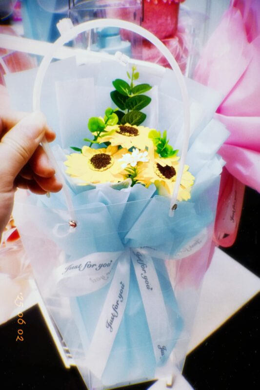 Mang đến sự tươi vui và rạng rỡ với bó hoa 3 bông hướng dương nhỏ xinh, biểu tượng của niềm tin và hy vọng. Bó hoa được gói tỉ mỉ trong lớp giấy màu xanh dịu mát, tạo nên sự hài hòa và thanh lịch. Đặc biệt, sản phẩm được đựng trong túi nhựa trong suốt tiện lợi, có quai xách, giúp bạn dễ dàng mang tặng. Dải ruy băng trắng với dòng chữ “Just For You” càng làm tăng thêm ý nghĩa cho món quà đặc biệt này. Một lựa chọn hoàn hảo để dành tặng những người thân yêu trong mọi dịp!